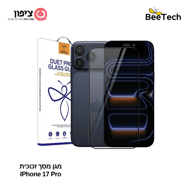 אייפון 17 פרו מגיע בגודל מסך 6.3 אינצ' המגן מסך של BeeTech בעל טכנולוגיה מחוזקת שיהיה מאוד קשה לשרוט את המסך , בנוסף המגן מסך מכסה 98% מהמסך באיכות 3D שנותן מראה של פינות מעוגלות וכאילו אין לכן מגן מסך זכוכית על המכשיר למרות שהוא בעובי 0.33 מ"מ. ניתן למצוא אצלנו מגוון אביזרים לאייפון 17 פרו במחיר מנצח!