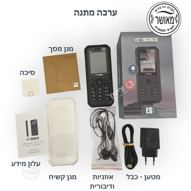 אסקולס ES1 הוא הדגם המוקשח בסדרת הטלפונים הכשרים ועדת הרבנים. טלפון מאושר לסים כשר בלבד אבל השקיעו בו חשיבה רבה והכניסו בו פונקציות רבות כך שלא יהיה לכם משעמם איתו לדוגמה: פנס עוצמתי מאוד, מענה בייביסיטר, רשימה שחורה ולבנה, רשמקול, שעון מעורר חכם, לוח שנה עיברי + זמני היום בהלכה, חיבור טעינה טייפ סי. שנת יציאה: 2025. מכשיר קשיח ועמיד במים בתקן IP68. אחריות 12 חודשים על ידי היבואן הרשימי בפריסה ארצית. חותמת מאושר וועדת רבנים מקדימה ומאחורה. קליטה משופרת דור 4G תומך 2 כרטיסי סים יחד. ערכה מתנה: מגן מסך זכוכית, מגן אחורי שקוף עם פינות בולטות, ראש מטען וכבל, אוזניות + דיבורית, עלון מידע ועודת אחריות - הזמינו דרך האתר וקבלו משלוח מהיר חינם לכל הארץ!!