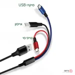 כבל 1 שמתפצל ממנו 3 כבלים התומכים טעינה מהירה של 18W.