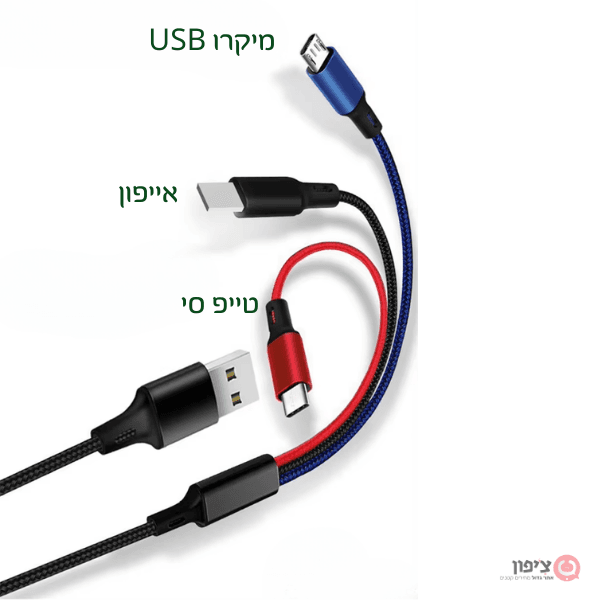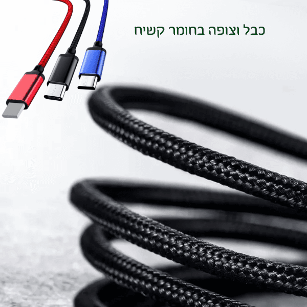 כבל טעינה ל: טייפ סי , מיקרו USB , ואייפון .