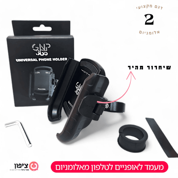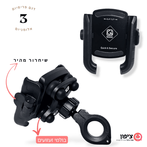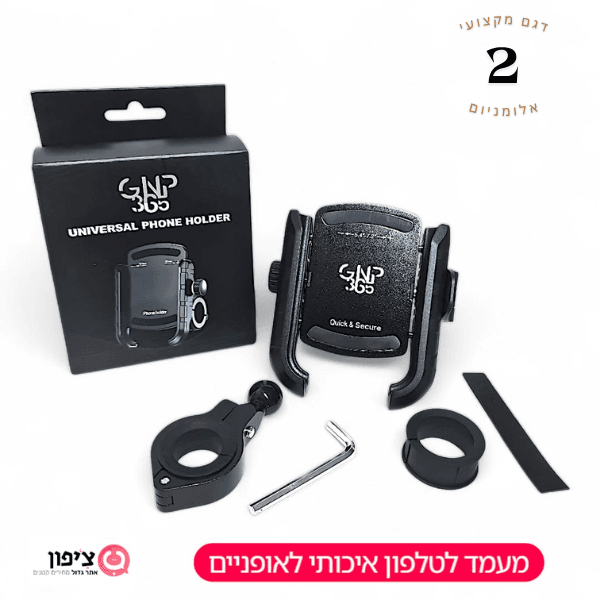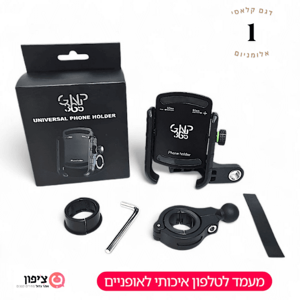 המעמד הכי קלאסי וברמה גבוה עשוי מאלומניום עם בורג כיוון בצד תקבעו לו את הרוחב של הטלפון והוא ישמור לעם עלו, היתרון שיש לו תושבת לכידון מאלומיניום יכול להתאים למכשירי סלולר מגודל 4.5 אינצ' עד 6.9 אינצ' - מחיר זול רק 85 שקלים ומותאם לרכיבה של אופני עיר אופניים חשמליים ואופני הרים.