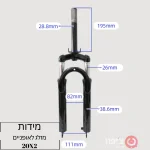 מזלג לאופניים מידה 20X2 הכולל בולם וראש הברגה.