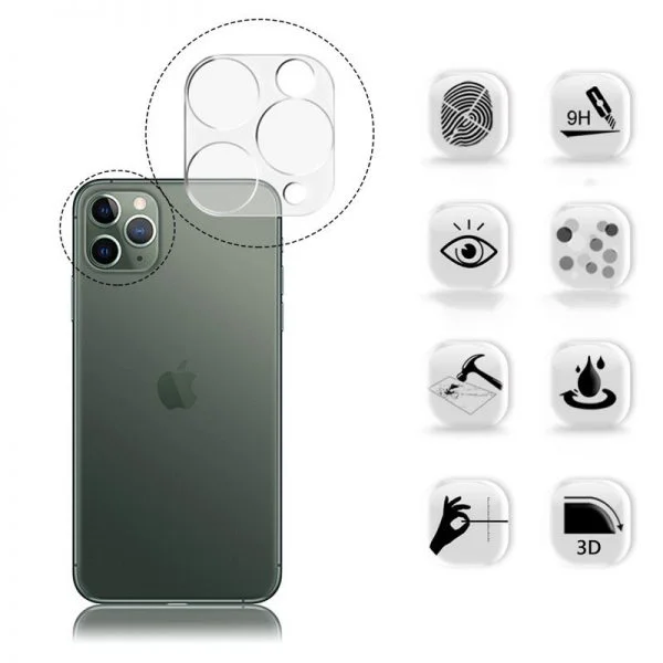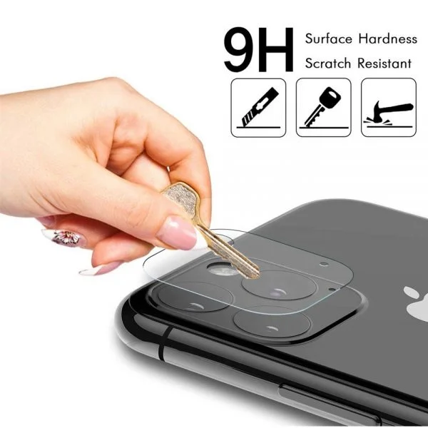 מגן עדשת מצלמה לאייפון 11 – אייפון 11 פרו – אייפון 11 פרו מקס, מגן עשוי זכוכית מחוסמת עמיד מפני שפר ושריטות, אינו גורע מאיכות המצלמה, כמעט ולא תרגישו שיש לכם מגן מסך זכוכית על המצלמה.