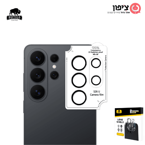 מגן מצלמה לגלקסי S26 אולטרה בטכנולוגית הגנה שאינו פוגע באיכות המצלמה ולא מורש שיש לכם מגן עם המצלמה! המצלמה הוא המוצר הכי חשוב בטלפון, לכן הוא צריכה הגנה בדיוק כמו על המסך ועל המכשיר. המגן מצלמה מתאים גם למי שיש כיסוי כך שזה לא מפריע!