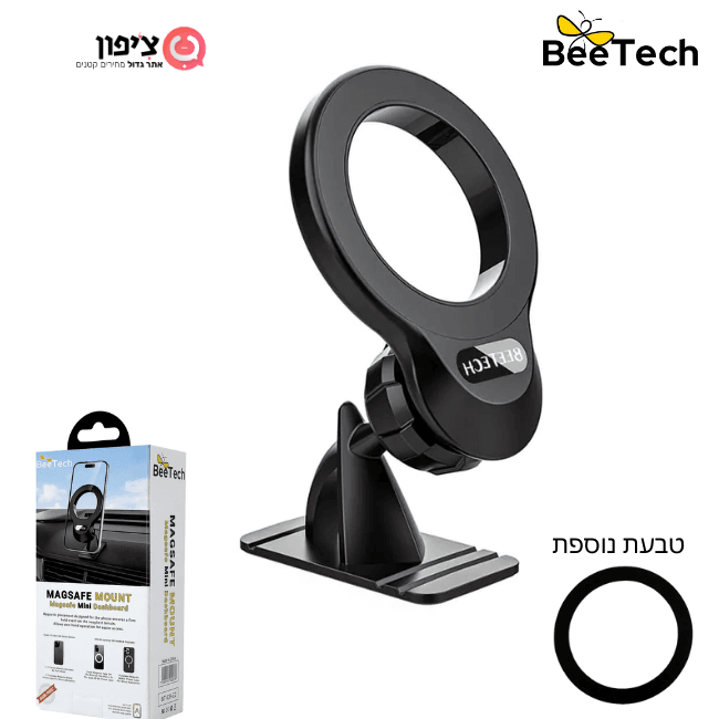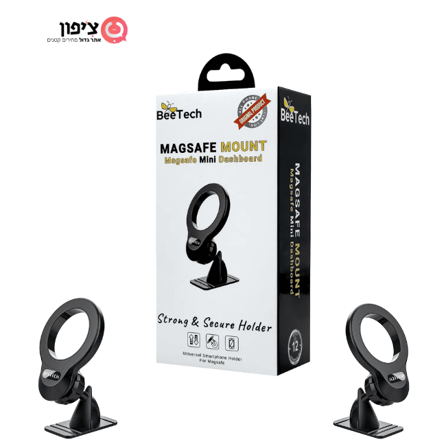 מעמד לטלפון לרכב עם מגסייף דגם הקומפקטי ביותר בסדר המעמדים של BeeTech אבל עוצמתי! דגם:MINI C9-Z2. מתאים למכשירי סלולר שונים אפל או אנדרואיד, עד 6.9 אינצ'. ראש מתכוונן 360 מעלות, נדבק על כל משטח וגם מחוספס. מגי עם טבעת מגסייף + דבק נוסף לתושבת
