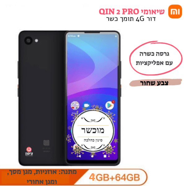 שיאומי QIN 2 PRO 64GB דור 4 בגרסה כשרה, ללא דפדפן אינטרנט, מגיע עם חנות אפליקציות מסוננת חיונית, תומך סים כשר או רגיל (מתאים לסים אחד בלבד!)