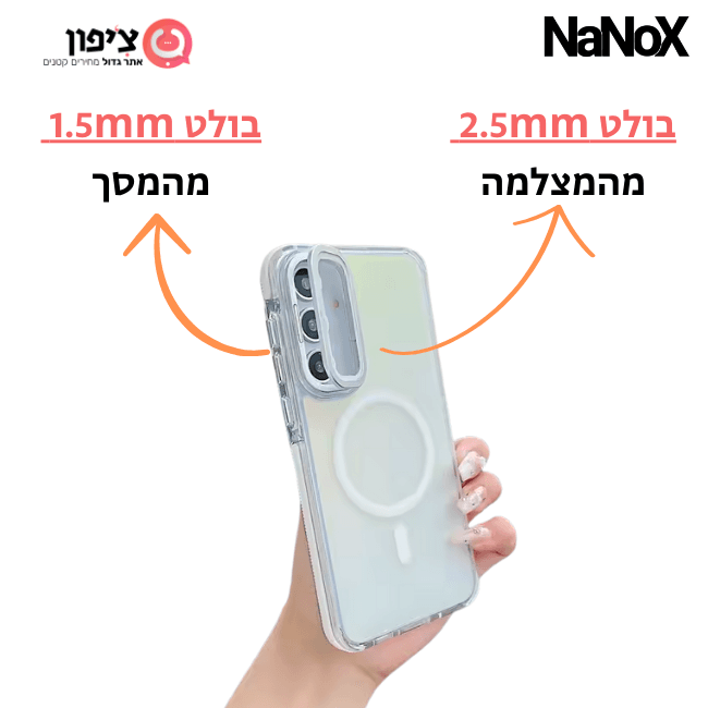 בזכות אפקט מראה שמחליף צבעים בזוויות שונות, כל מבט על הטלפון ירגיש אחר. הוא מושך את העין, בולט מהשגרה ומעניק למכשיר מראה ייחודי שמתאים בדיוק לך.