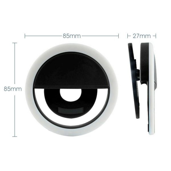 מי לא רוצה להיראות מושלם על הסלפי הראשון? מוצר חובה לסלפי המושלם!! רינג תאורה המותאם להלבשה על גבי מסך הסמארטפון באמצעות קליפס. בעל תאורת לד. ניתן לשלוט בעוצמה באמצעות לחיצת כפתור- בעל 3 עוצמות תאורה. נייד, קל ונוח לשימוש. נטען באמצעות כבל USB ובעל סוללה עמידה לשימוש ארוך טווח. בגודל 8 ס"מ קוטר, קל לנשיאה בתיק ולשימוש בעת הצורך. מתאים למגוון סמארטפונים. מגיע במגוון צבעים-