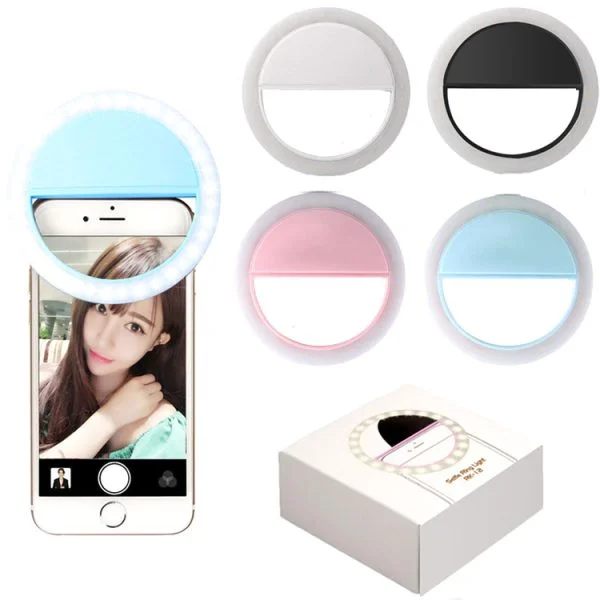 מי לא רוצה להיראות מושלם על הסלפי הראשון? מוצר חובה לסלפי המושלם!! רינג תאורה המותאם להלבשה על גבי מסך הסמארטפון באמצעות קליפס. בעל תאורת לד. ניתן לשלוט בעוצמה באמצעות לחיצת כפתור- בעל 3 עוצמות תאורה. נייד, קל ונוח לשימוש. נטען באמצעות כבל USB ובעל סוללה עמידה לשימוש ארוך טווח. בגודל 8 ס"מ קוטר, קל לנשיאה בתיק ולשימוש בעת הצורך. מתאים למגוון סמארטפונים. מגיע במגוון צבעים-