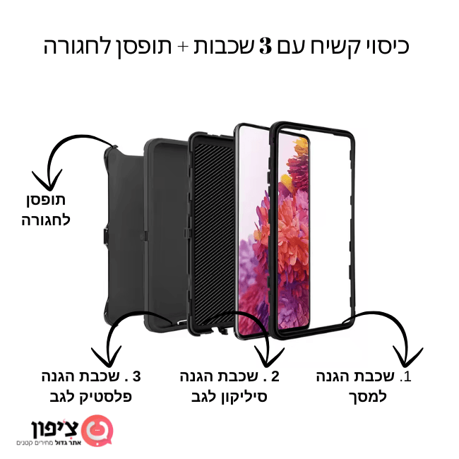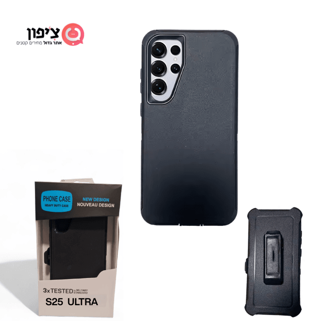 כיסוי לגלקסי S25 Ultra עם שכבות הגנה, קליפס חגורה מקצועי, עיצוב עוצמתי ומעמד מובנה ,קל משקל. שומר על המכשיר שלך גם בתנועה ובשטח.