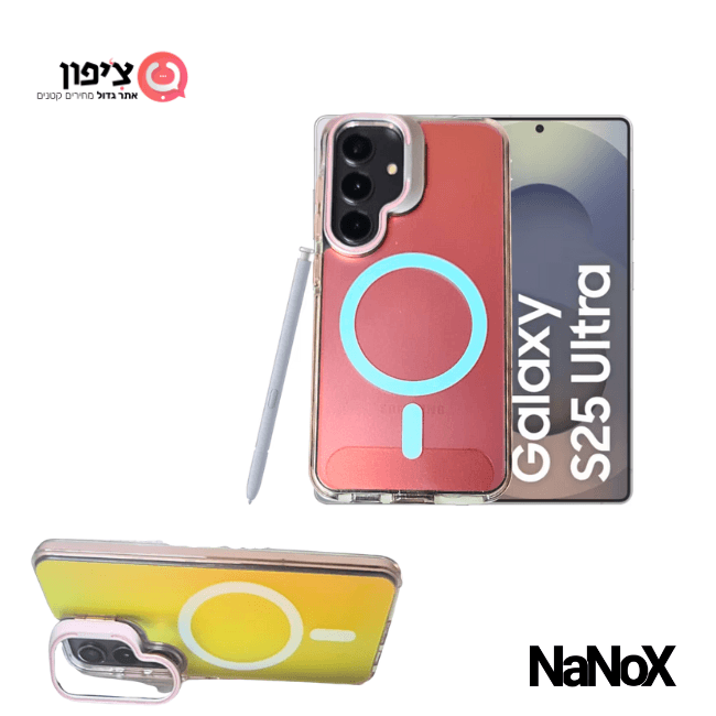 כיסוי יוקרתי לגלקסי S25 Ultra עם גימור צבע משתנה. תאימות מלאה ל־MagSafe. מגן מצלמה מתקדם ומעמד לשולחן. מראה עוצר נשימה, ביצועים ללא פשרות. נוח לשימוש ביד אחת - שומר על היופי של המכשיר וגם מגן חזק מפני נפילות!