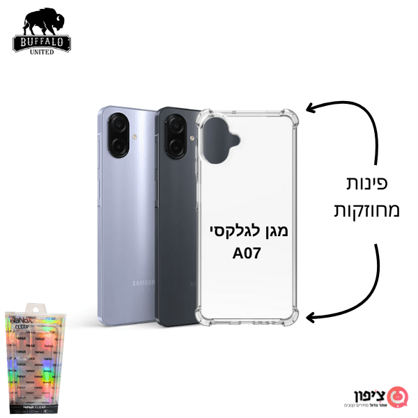 כיסוי אחורי לגלקסי A07 מחוזק - שקוף אל תתנו למחיר ללהטעות אותכם כי בצ'יפון המחירים זולים משמעותי בכל המוצרים עם דגם עם מוצרים איכותיים, הרווח שלנו פחות אבל האיכות גבוהה מאוד. כיסוי נוח ועמיד לגלקסי A07 שיצא בשנת 2025
