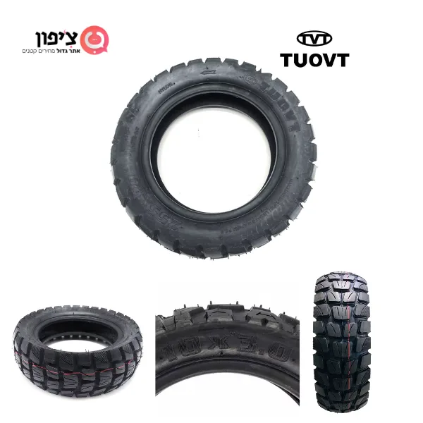 צמיג שטח לקורקינט המתאים למידות צמיג: 10X3 | 255X80 | 80/65 - זה אומר שאם יש לכם בקורקינט צמיג במידה הזאת אז הצמיג שלנו מתאים לכם ולשדרג את הקורקינט שלכם! צמיג שטח רחב שנותן אחיזה טובה ויעילה בכל תנאי רכיבה. זהו צמיג מבית טובוט (TUOVT) מחוזק לקורקינט חשמלי המונע 90% מחדירת תקרים עמיד לבלאי של שחיקה! ניתן להוסיף להזמנה פנימית 10X3 ולחסוך בעלויות!