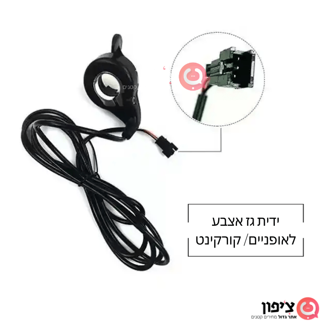 מצערת אצבע לקורקינט או לאופניים חשמליים הכולל קונקטור מוכן: